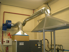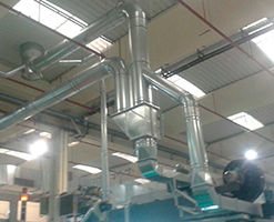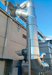 Transport of VOC’s coming from booths to a gas burner Made of galvanized Steel. General pipelines ø900 mm. Release to the atmosphere by pneumatic bypass.