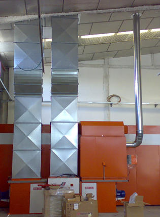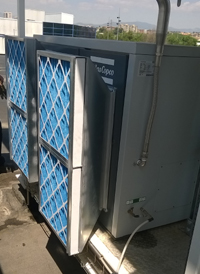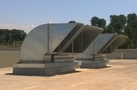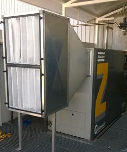 The hot air collected in the room, causes an overheating on the fan stopping the compressor. We improve the device performance by steering the hot air flow on the outside. In order to reduce the maintenance cost we install air filters on the entrances.